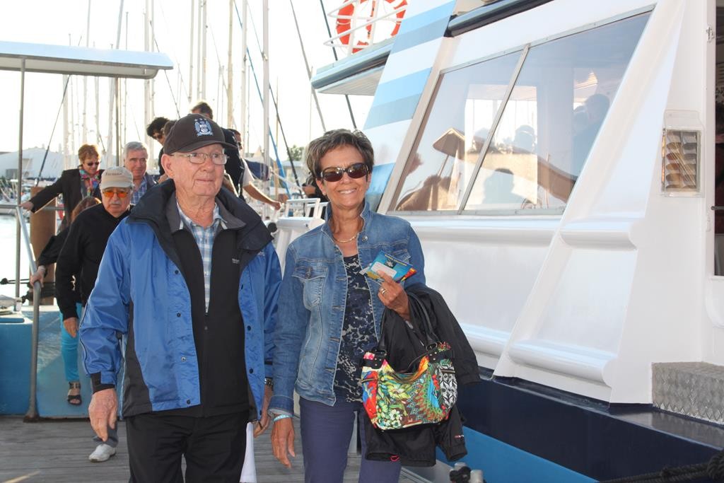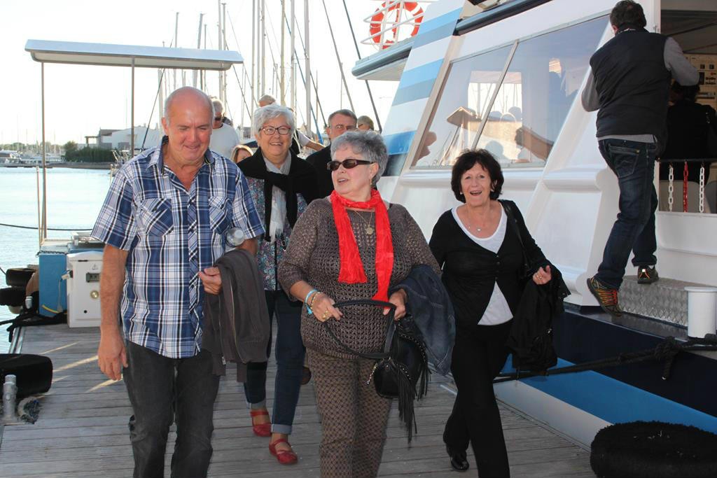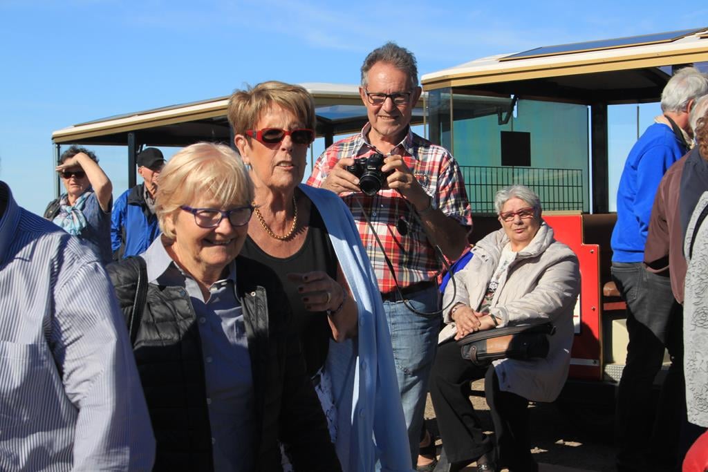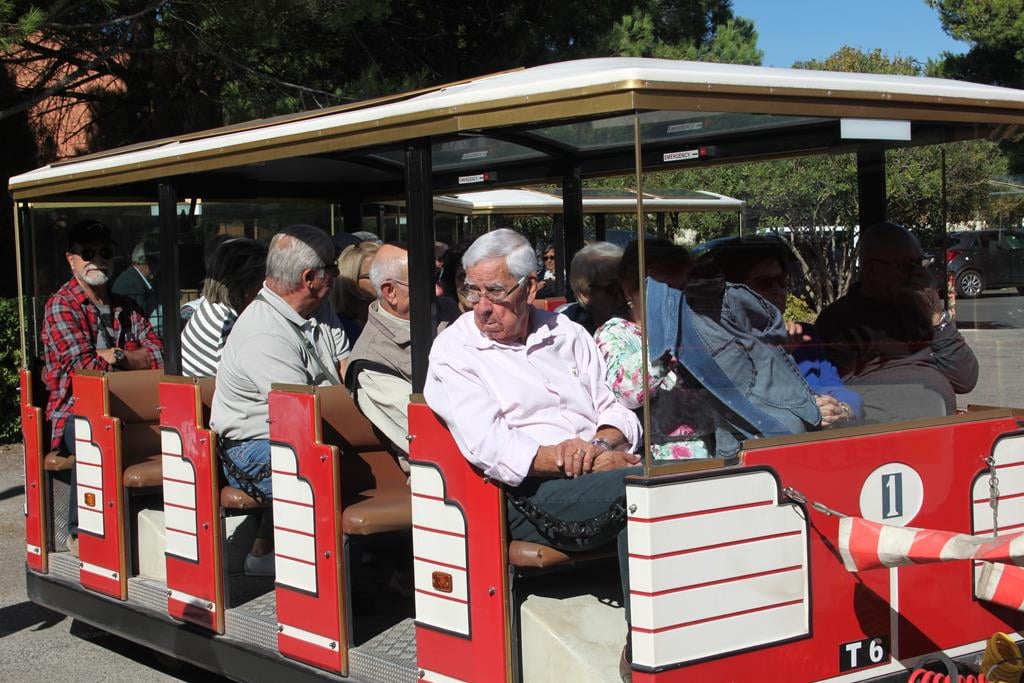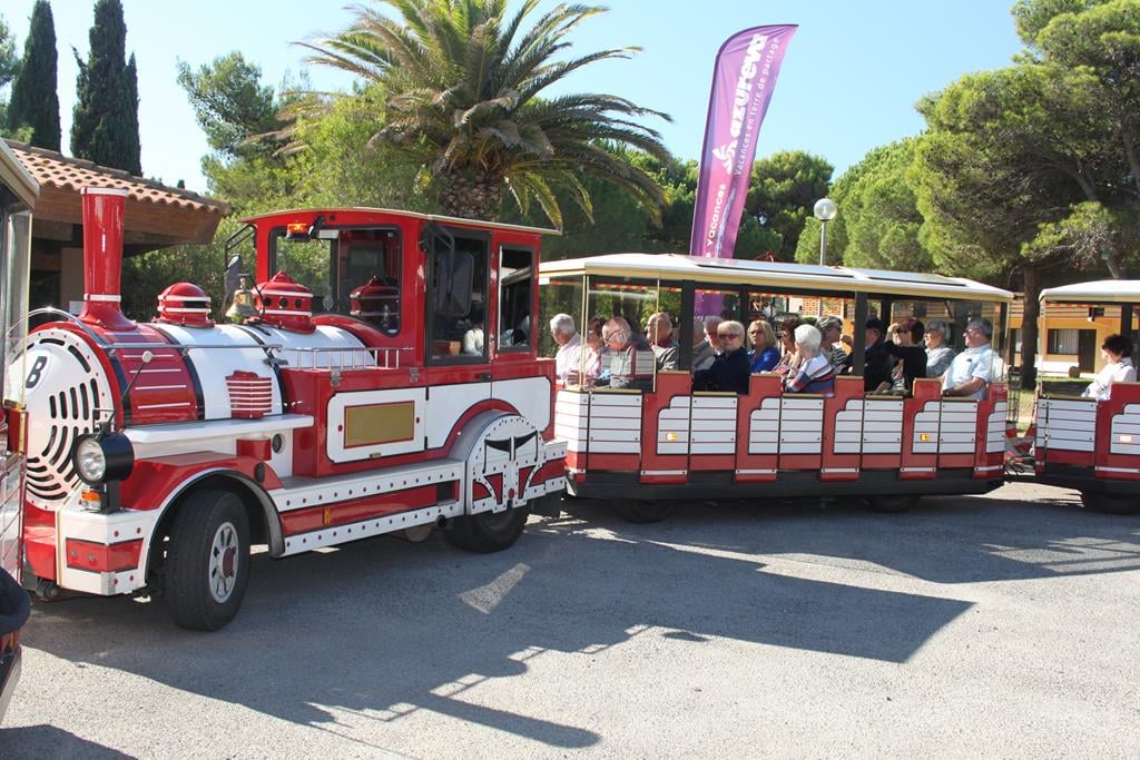 C'est sous un ciel toujours merveilleusement bleu qu'au matin de dimanche un petit train nous emmenait pour une visite commentée du Cap d'Agde. Avouons cependant que nous n'avons guère été attentifs aux explications diffusées, tant nos bavardages allaient bon train ! Mais quelle heureuse initiative, tout de même, et que la mer était belle en ce début d'automne.
