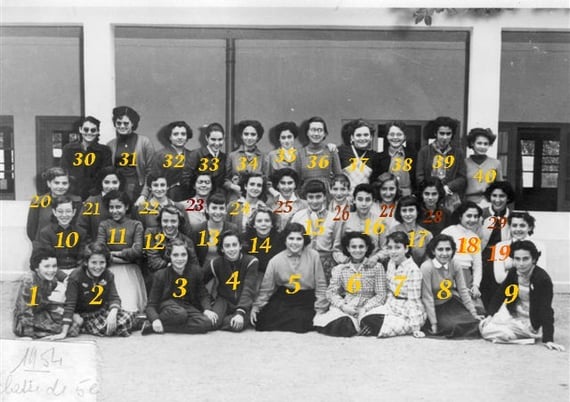 1: M.Paule BELTRAN - 2: M.Jeanne BIRBES - 3: Simone VAUTHEROT - 4: Jacqueline QUILES - 5: Suzy BASQUEZ - 6: M.J. RUIZ - 7: Michèle SALVADOR 8: Josette GIL - 9: Françoise MUNOZ - 10: Francine HAGGAI - 11: Odette SERDOUD - 12: Louisette LEGAS - 13: Mireille BENBUNAN - 14: Michèle DURAND - 15: Charlette BACOU - 16: Sylvette BELDA - 17: Jacqueline LOUQUET - 18: Suzy GASQUEZ - 19: Régine GARCIA - 20: ? -