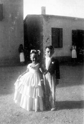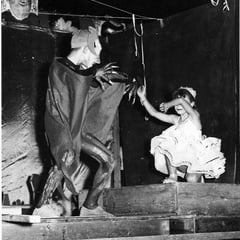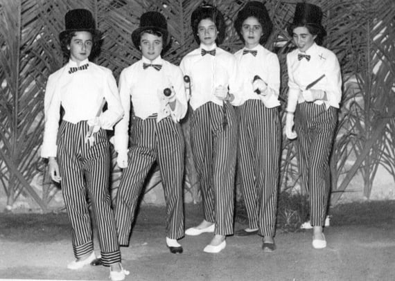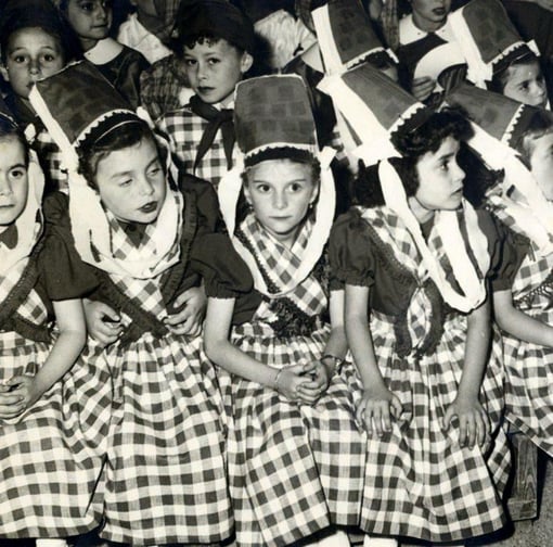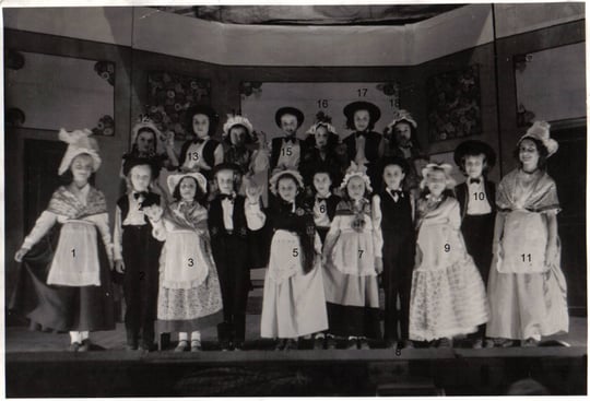 Année 1953-54 - De mignonnes meunières et mignons meuniers attendent d'entrer en scène.
