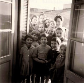 Avenue d' Oran, la maison ROSELLO et ses jeunes résidents la 1ère à gauche ROSELLO PAULE , Colette ROSELLO 3ème tête à gauche, le 26/02/1963 à l'occasion d'un goûter-anniversaire (doc. Colette)
